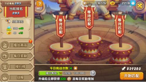 擂台战作为游戏中最为核心的PVP玩法,也是游戏中获得最多奖励的PVP设定,点击“开始匹配”可以随机匹配到高你一定排名的玩家,玩家需要根据自己的实力来挑战相应的玩法,擂台战中,战胜对手,即可拥有对手的排名。并且在每次刷新自己的历史最高排名时,还会有元宝奖励。