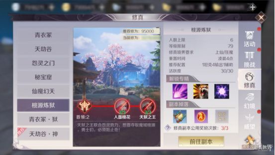 桃源炼狱属于等级较高的修真副本,其最低等级限制为79级,并且修真境界需要达到上仙/狂魔。副本中可以掉落仙魔技能书、A级宠物蛋,并且可以解锁专精。桃源炼狱副本的人数上限为6人,但只需要三人即可开启。下面就给大家带来详细的副本打法分析!