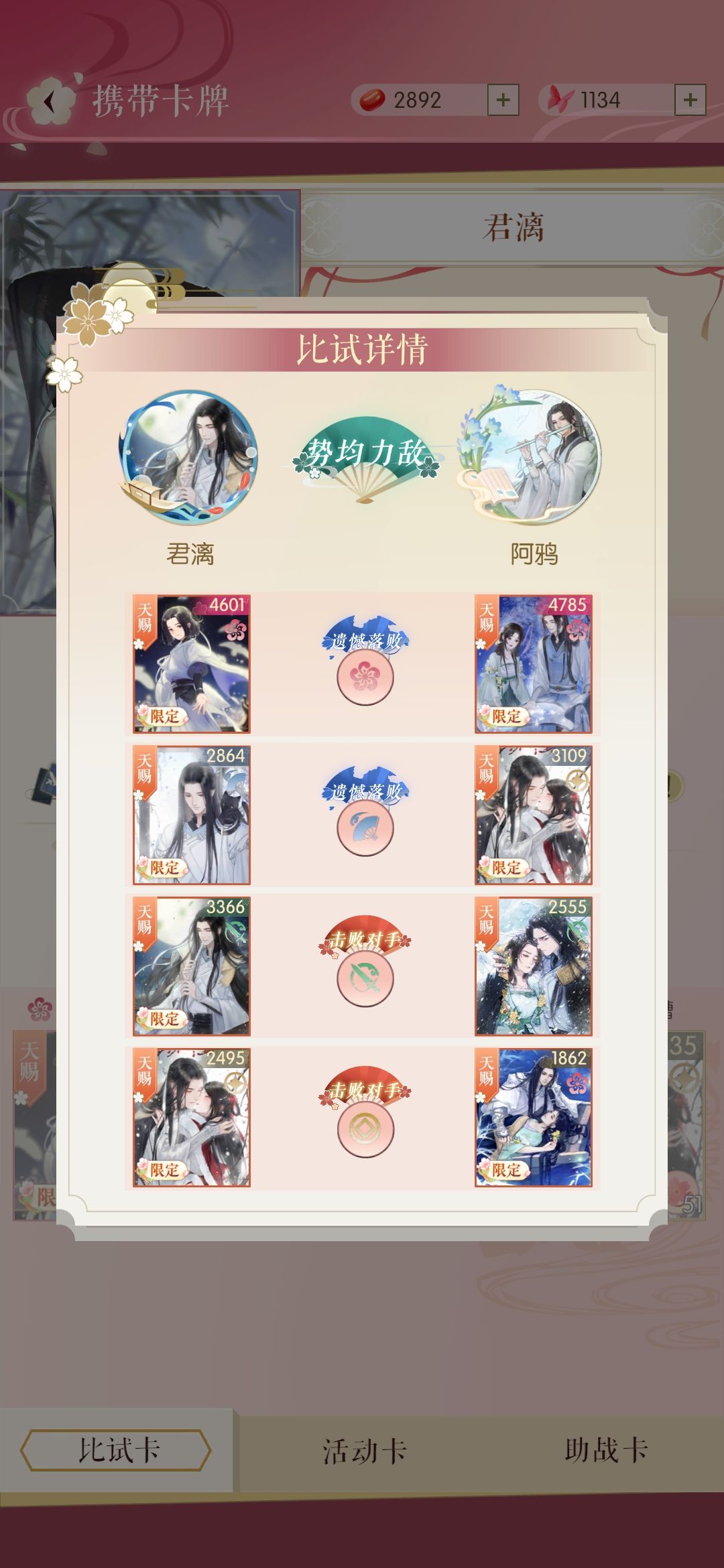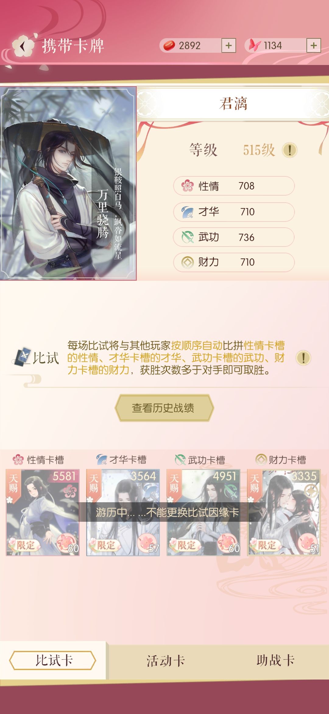 如图,我怎么也不可能一次游历过后卡值突然升高吧????而且游历结束没给比试的奖励,他妈的,气死我了