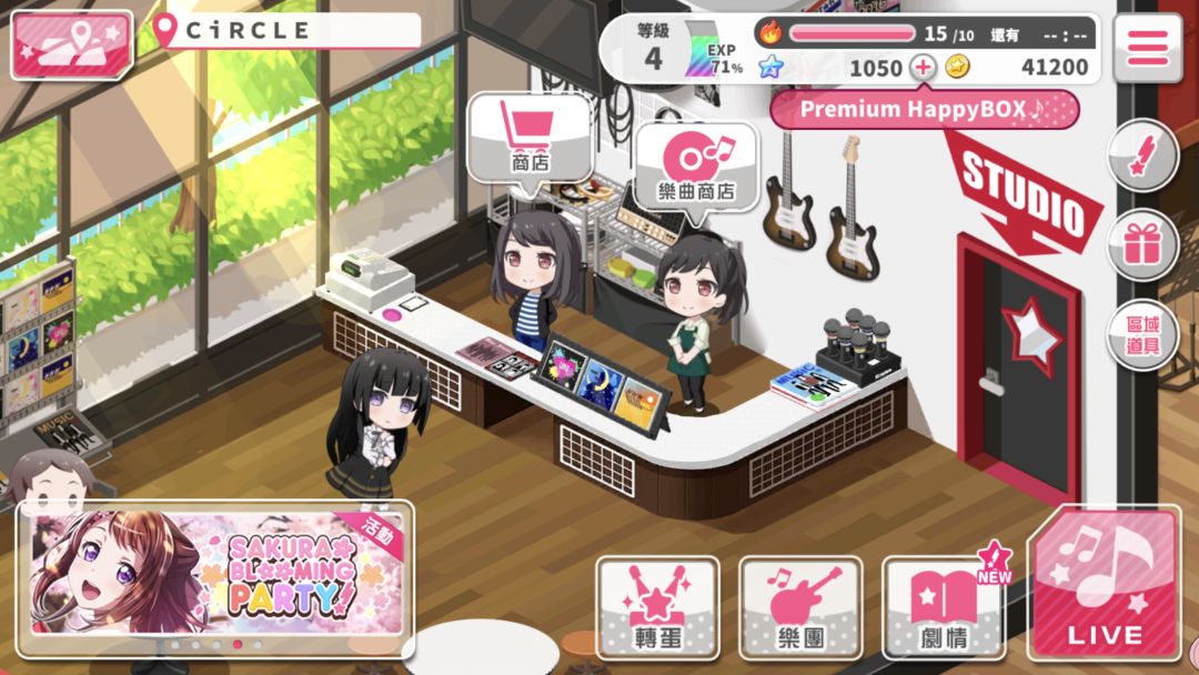 游戏拥有多种模式,在探索模式中玩家们可以体验每天都能和乐队的成员们一起行动进行会话。玩家们可以和少女们一起派发传单,购买乐器,和角色们一起去参加live活动等等。