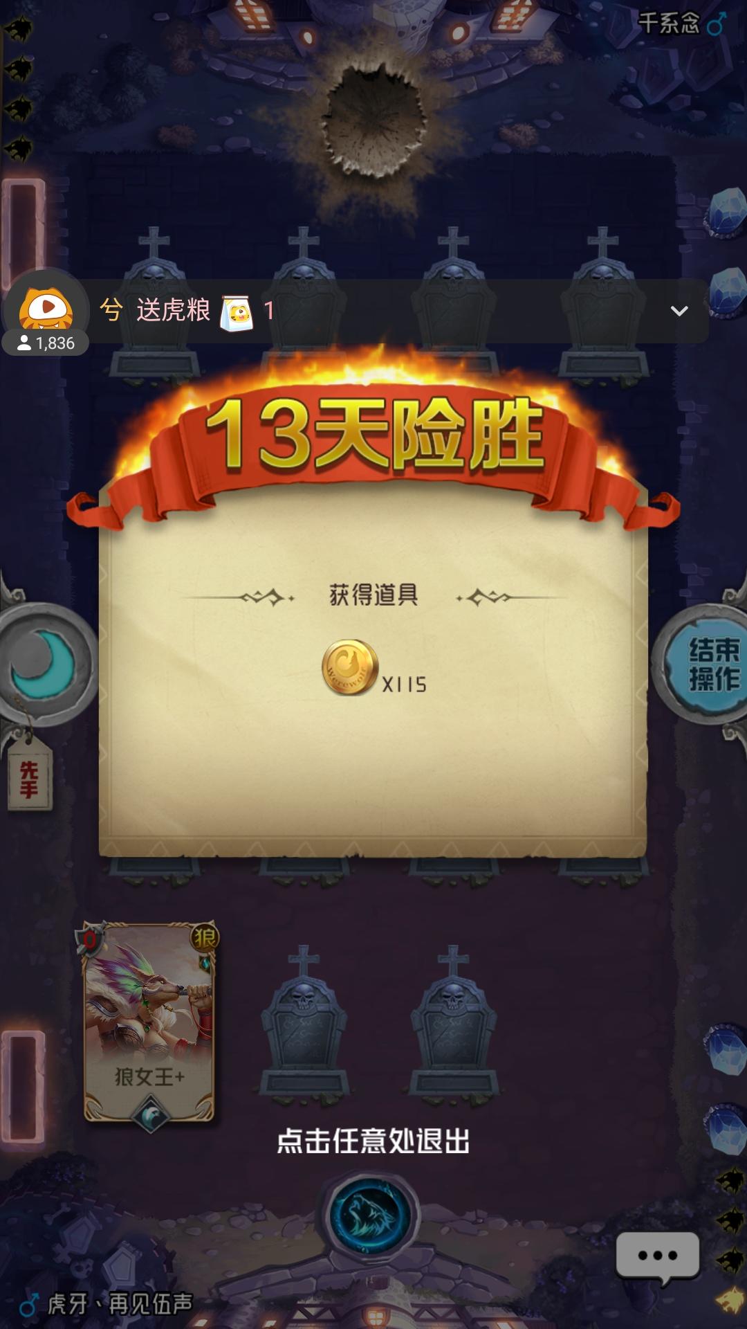 13天显胜,我自己都快哭了。玩的惊心动魄的。要不是我先刀就输了。