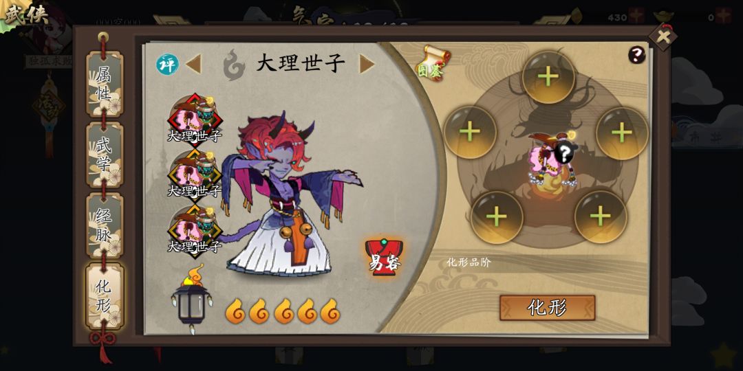 气宗3逍遥都是绿化形叠甲自带一张回马枪(叠甲本来就偏后期才能玩那时紫色不难打了)我有些工具人用蓝化形做的主要绿的材料用完了蓝材料比较多还有橙色已下随便和(工具人都做完了)和错了后期可以当材料升红用然后橙色慎重和