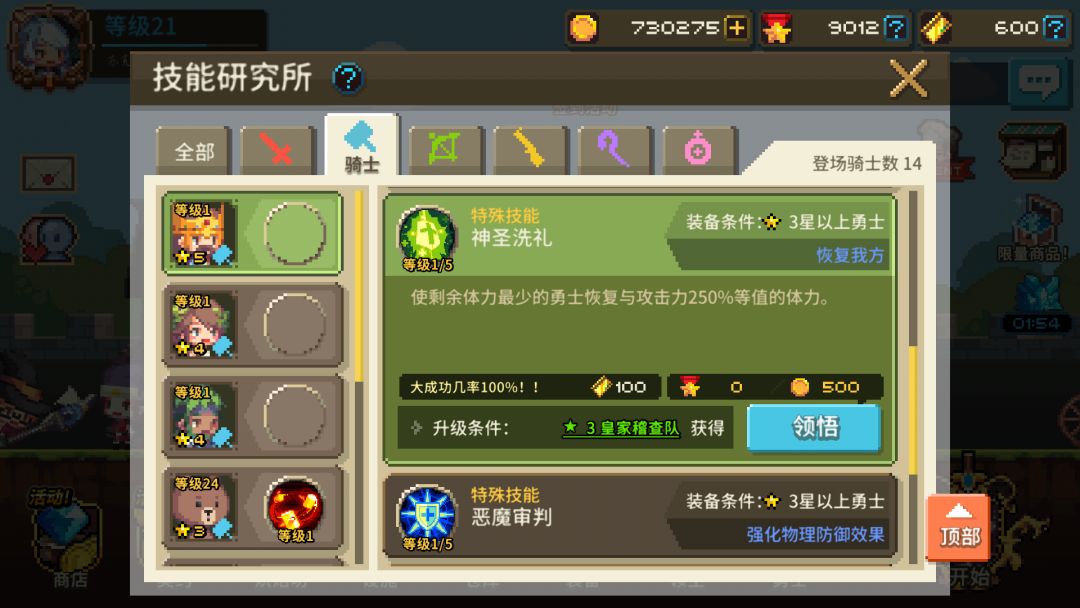 领悟技能界面