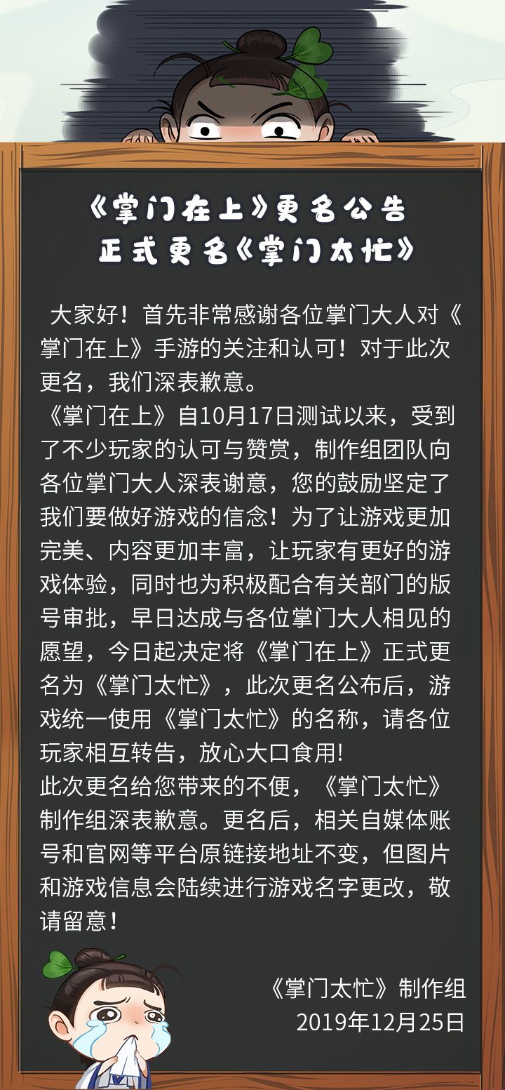 【更名公告】《掌门在上》正式更名《掌门太忙》