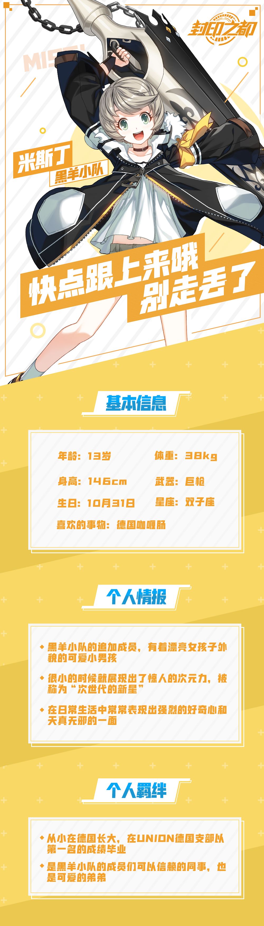 米斯丁虽然年纪还小,但是拥有惊人的潜力和超能力呢!!以第一名的成绩从Acadmy毕业之后加入黑羊小队,成为黑羊小队的追加成员~