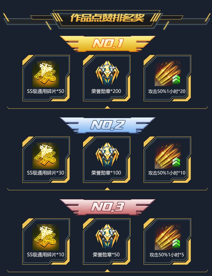 当然,由于指挥官作品将通过投票点赞的方式进行排名,因此除了作品本身的含金量以外,特别考验的还是该区服指挥官的默契度和协作性哦!