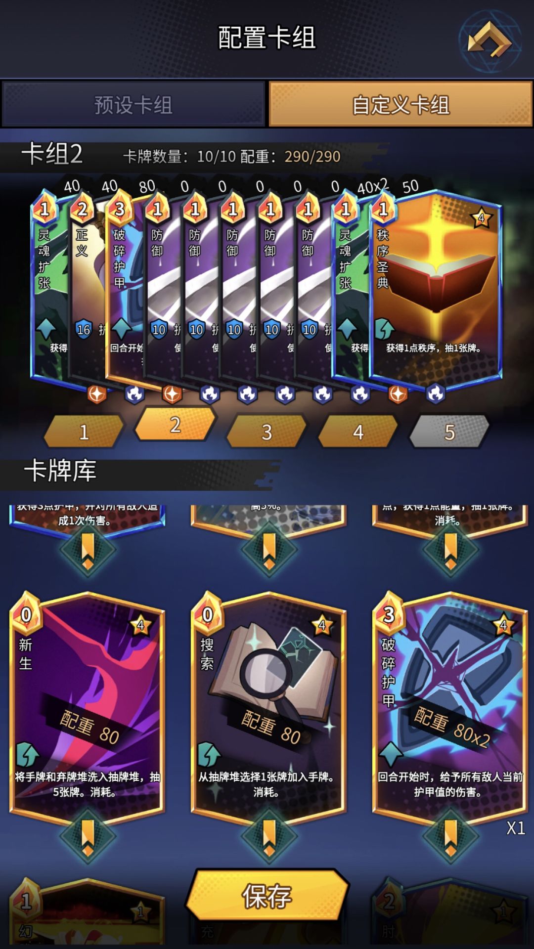 )那么就稳了!如果没抽到,那么只能先上秩序叠盾,保命要紧!找个机会上“破碎护甲”,就没多大问题!所以推荐带上怪物能力的“坚固”,哪怕只是3费也可以打死那些看门狗