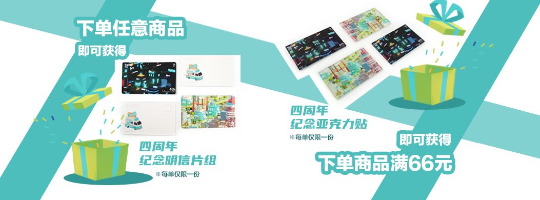 福利一:限时店铺下单,就送“四周年纪念明信片”一套