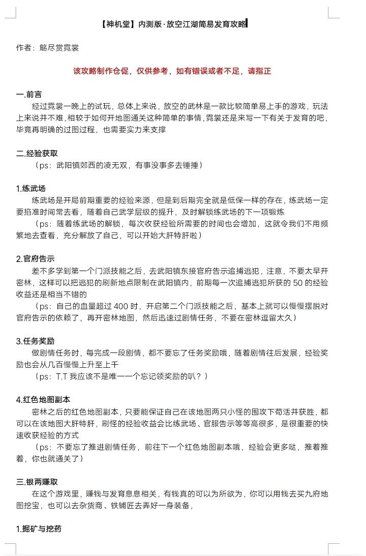【神机堂】放空的武林发育攻略