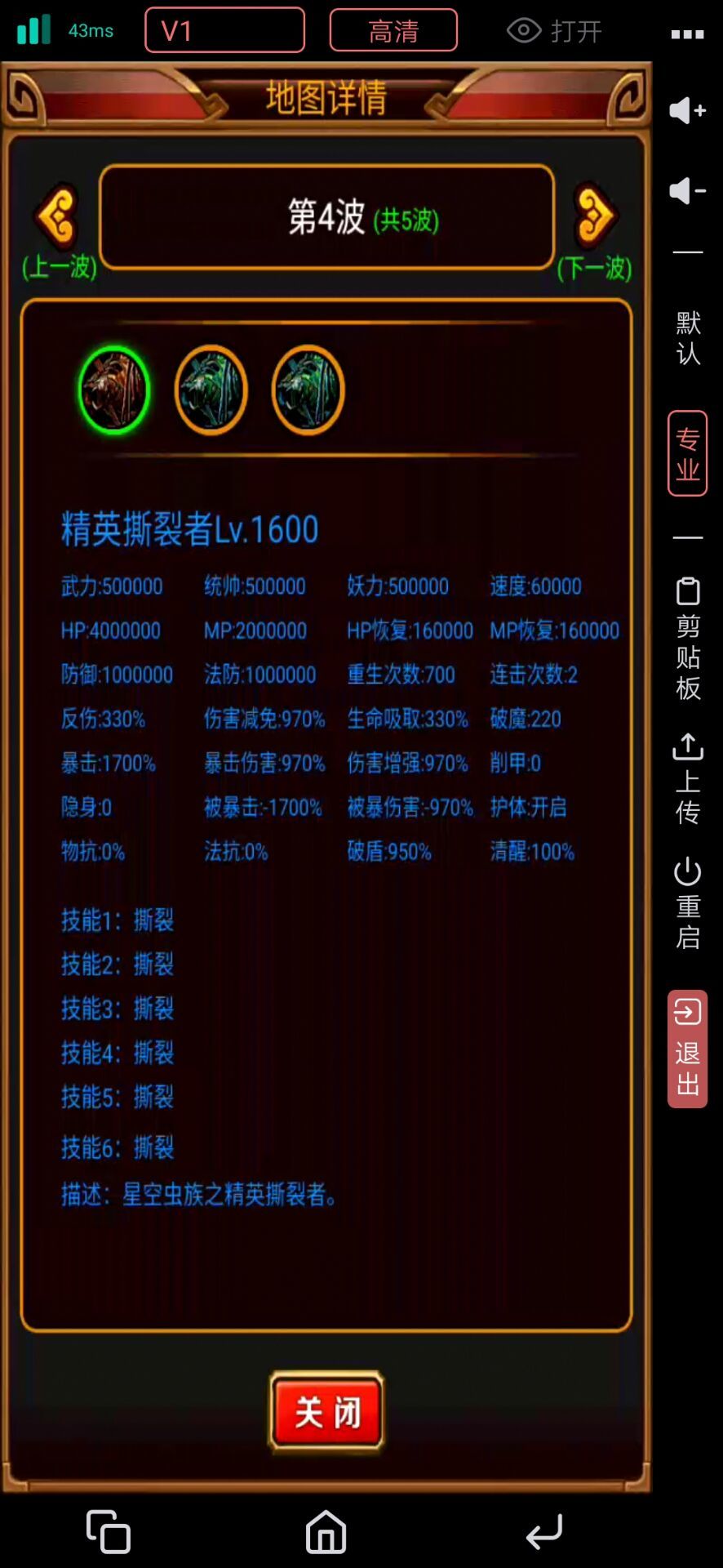 难点及怪物分析:怪物技能属性我就不描述了,你只需要知道精英出手必定秒你就行了。IOS由于基础属性高,可以叠防御用反伤过,安卓你叠防御第一波小怪都抗不过。所以目前叠防御反伤是行不通的。可采取的方法只有一个:硬怼。