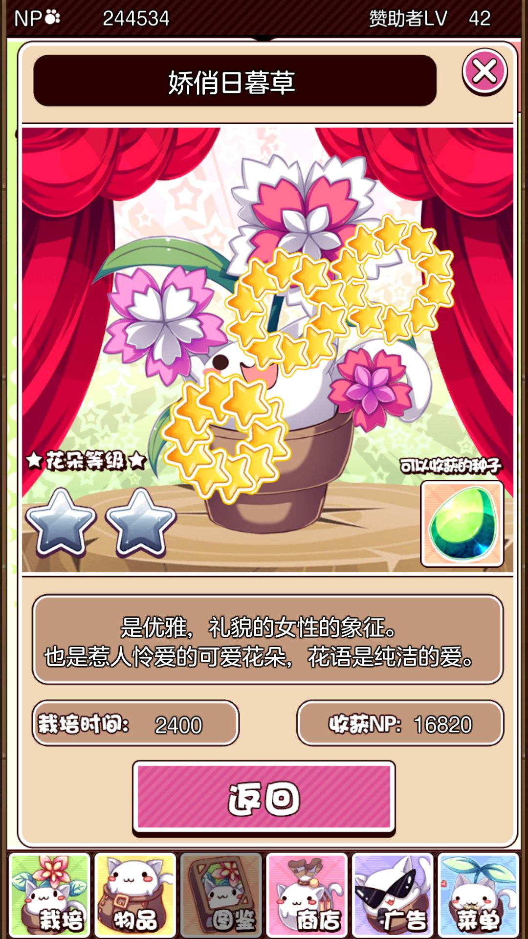 NO.4公主堇,稀有度☆1,快速之种 昂贵之种变异获得,收获变异之种x1