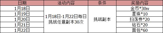 活动内容:活动期间,完成单日活动要求的副本挑战30次,即可在活动结束后获得丰富奖励。