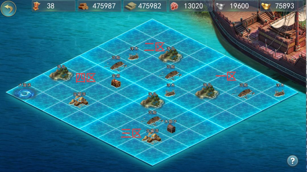 首先,远征的海域共分成四个区域,其中: