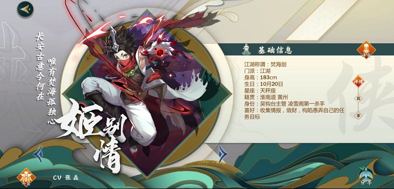 凌雪阁大名鼎鼎的头号杀手,号“焚海剑”。是凌雪阁“长安古意”刺客小队的首领。