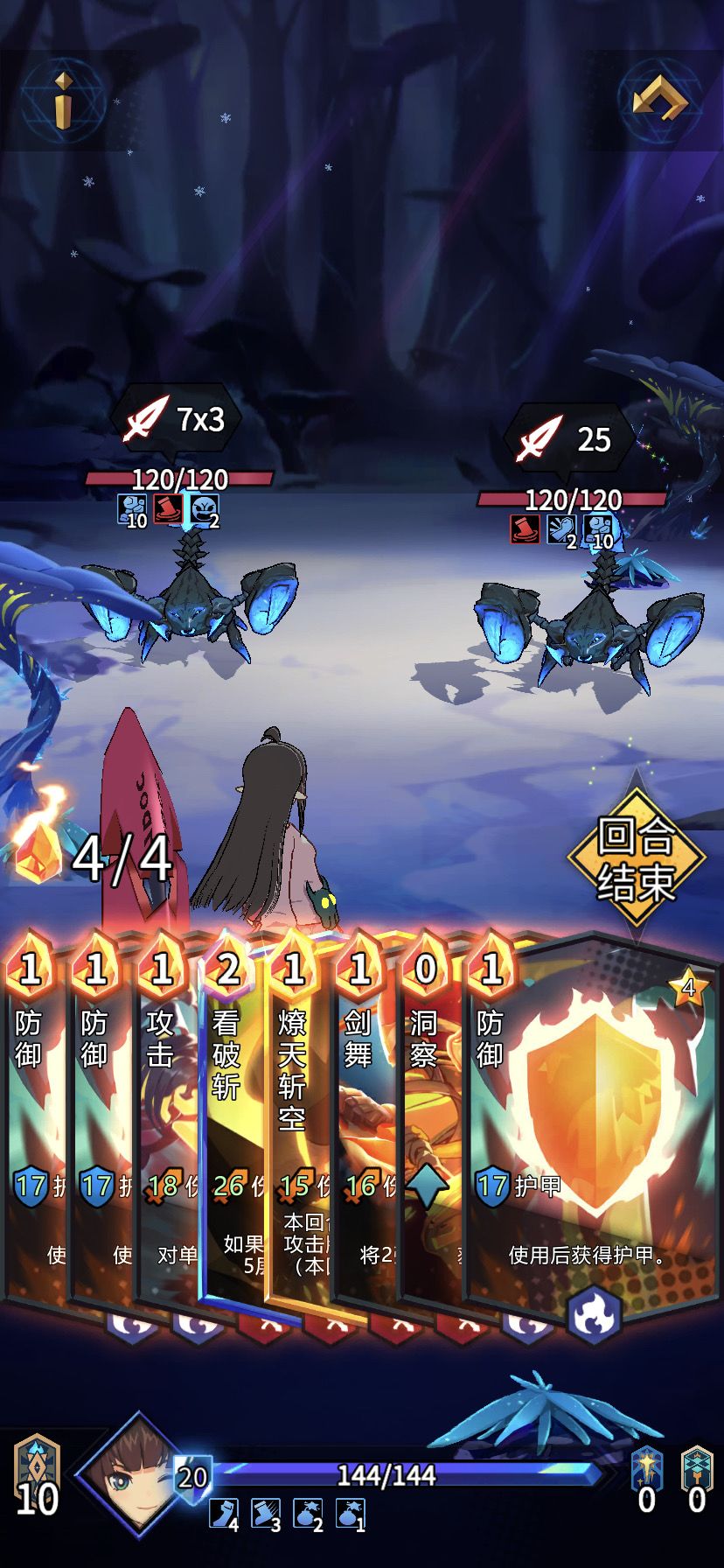 打发:连击秒它就好了,是攻击卡就扔,反正怎么打都是10点血,适当的吃一下护甲