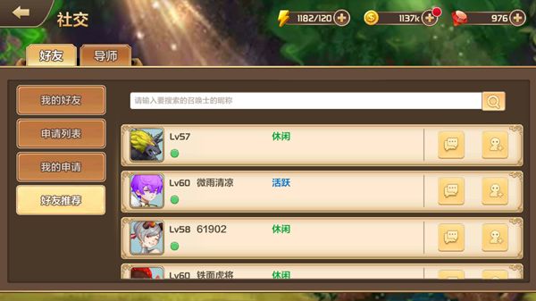 为了助力召唤士更好的融入游戏,《星之召唤士》不仅能在聊天页面、公会系统和组队副本添加好友,更推出了推荐功能。只要点击好友界面的“好友推荐”,就能够看到其他召唤士的头像、等级等信息,点击聊天即可在线聊天,点击添加好友即可直接发送申请,对方同意后则成为好友。