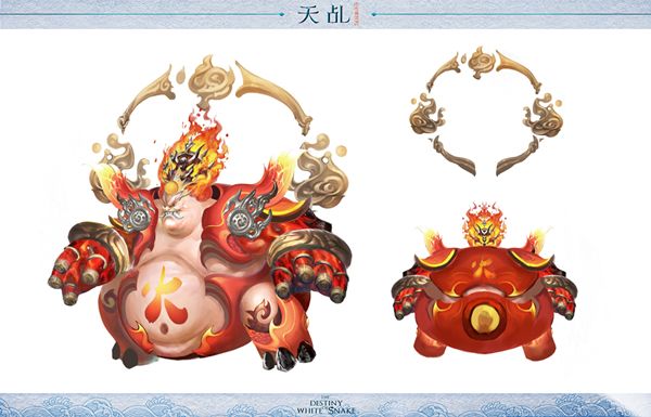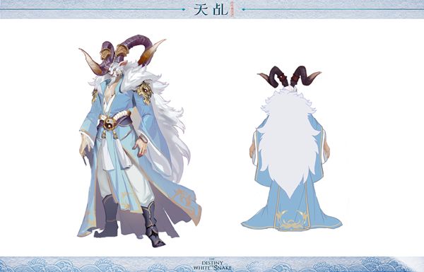 夫诸的设定主要依托于鹿的形象,相较于普通的鹿,夫诸将多一点山灵精怪的味道。着色以白色为主基调,搭配上更富神秘气息的印记图案,将夫诸流线型的体态表现到最完美的境地。