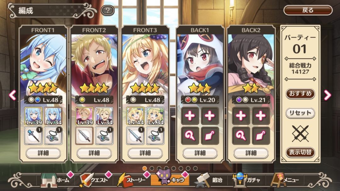 本人比较推荐物理体系,能够快速1刀Hard活动BOSS,今天刷的一个王女号大约8个小时就做到auto1刀了(没拿绿币买扫荡票子,无脑买的话可以更快),练度如下