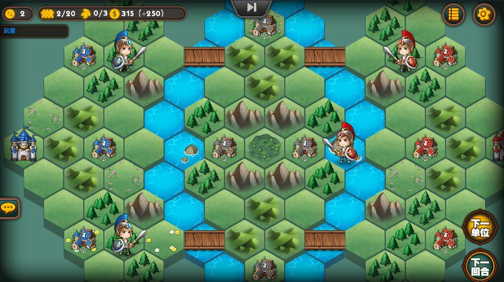 蜂窝构成的棋盘上摆放着城堡,和城镇。玩家通过攻城掠地的方式来取得最后的胜利!复杂的环境给人一种身临其境的感觉。山川河流,森林沼泽。都变成了可以利用的条件。合理安排兵种的分布,占领更多的城镇。才能最大化的增加经济的增长速度。城堡作为被征服的目标,也是生产士兵的兵工厂。游戏里的快慢节奏可以在设置里面调整,可以说非常贴心。玩法也很多样,具有超高智商Ai组成的关卡挑战,根据游戏提示的小任务,挑战成功才能解锁后面的关卡。完成小任务并且战胜Ai就可以得到宝石奖励。宝石用于强化兵种的能力!也可以购买商城里游戏的主题皮肤。