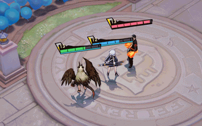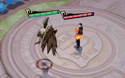 以弧形掠向前方后再返回,对路径上的敌人造成物理伤害和50%效果衰减的减速效果,持续1秒。飞行过程中再次点击技能按键将急停,但会受到持续2秒的50%减速,飞行过程中可进行俯冲攻击。
