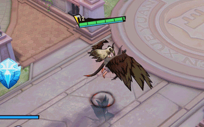 脱战5秒后自动飞向空中,飞行姿态下进行攻击将朝目标当前位置发动俯冲攻击,额外造成120+当前等级*10点物理伤害和50%效果持续衰减的减速,持续0.75秒。攻击后落地恢复地面姿态。