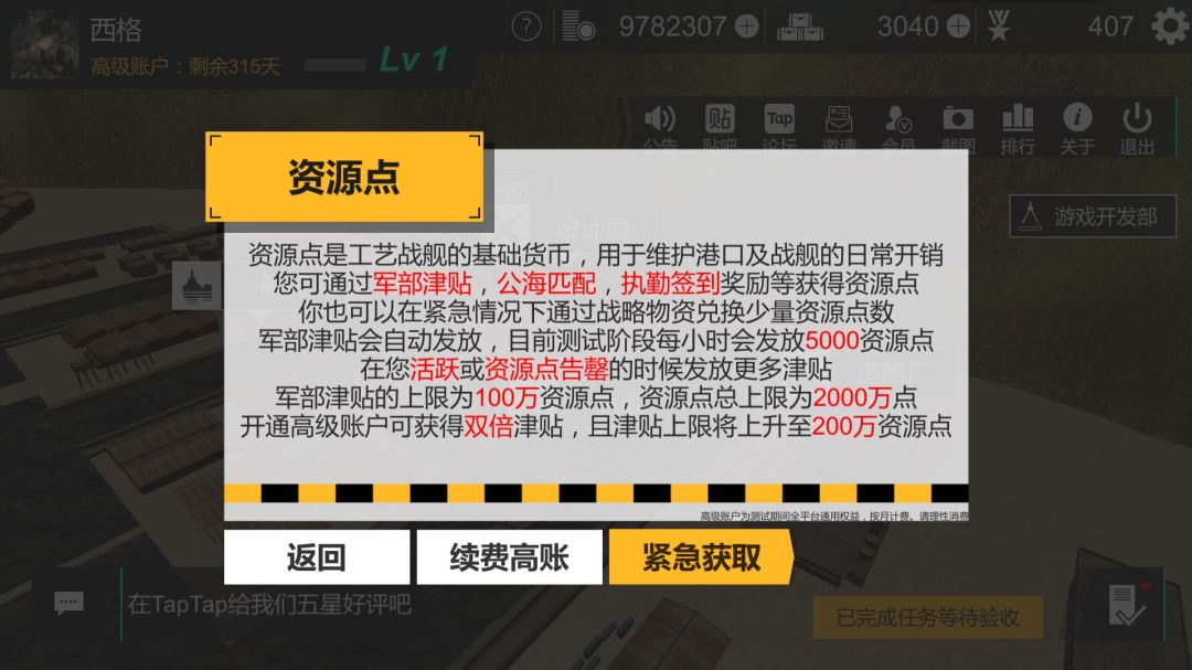 首先,要和各位提督介绍的,就是2.180801版本实装的经济体系了。资源点是工艺战舰的基础货币,用于维护港口及战舰的日常开销您可通过军部津贴,公海匹配,执勤签到奖励等获得资源点。