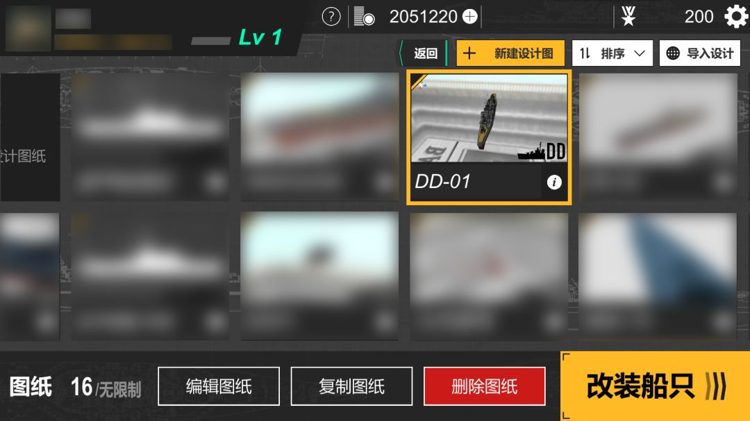 与此同时,在设计界面我们也加入了改装舰船功能,设计图与船坞中舰船名称相同的船只将会触发改装舰船功能,您原有的建造船只按钮将会由改装船只按钮替换。根据您设计中改装程度的大小,将需要支付一定改装费用方可进行改造。改造完成的舰船将会替换您船坞中原有的同名舰。请注意。