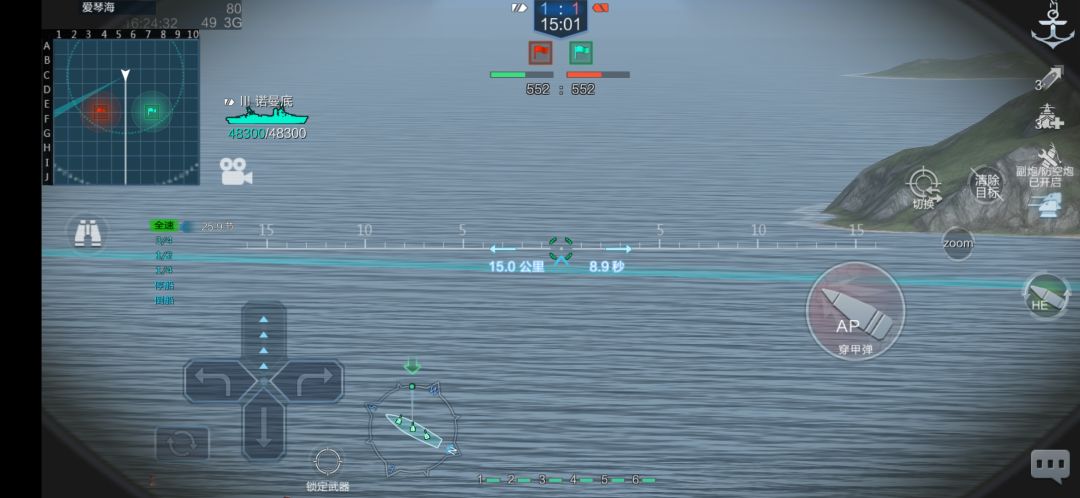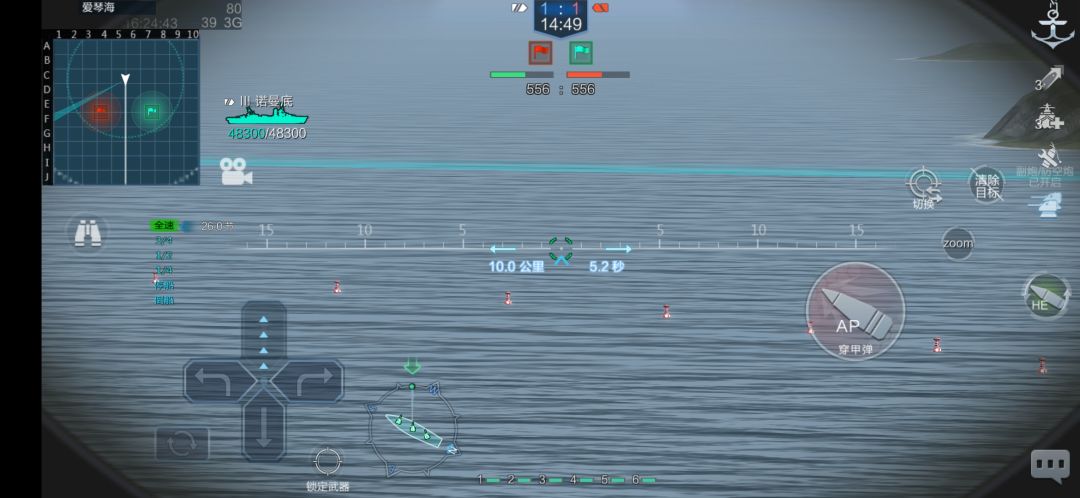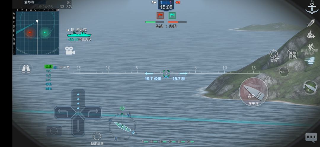 极限射程19.7km,15.7s,AP水平方向平均速度502.0m/s(程序员b姐曾说你游炮弹在游戏中的飞行速度是现实中的2倍,但除于2又会出现比初速大的情况。所以我这里就把数值皆除以2.5,只是做为不同主炮之间的横向衡量的参考值,并非真实数值);