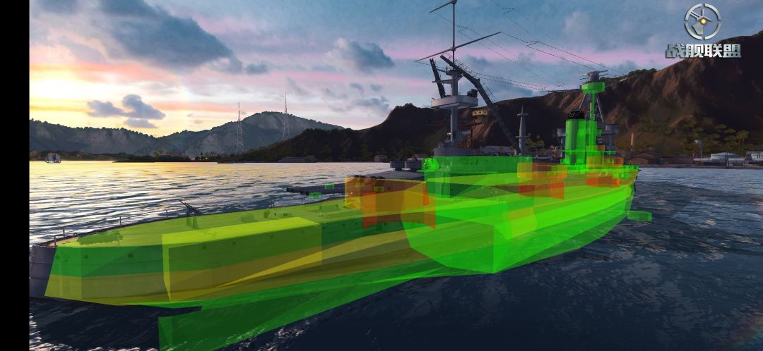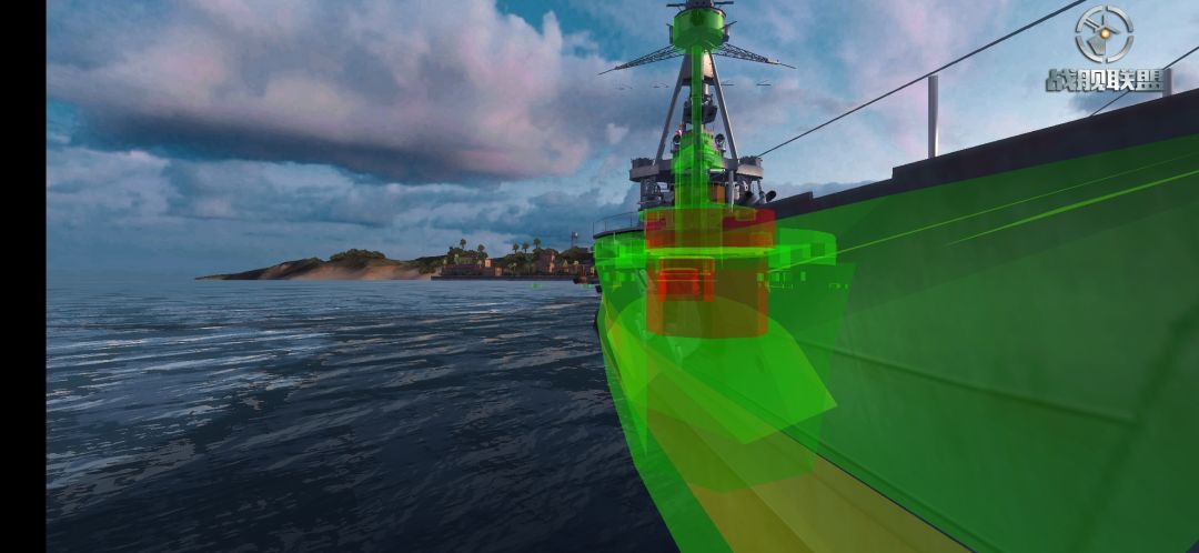 从图中咱们可看出诺曼底具备穹甲,且核心区前后都有覆盖完整个舱段的垂直装甲挡板,副炮廓和艏艉水线处都覆盖着显示为淡红色的装甲。装甲盒的最前部,有三块突出于前挡板类似穹甲的向前倾斜的三角形装甲板所组成的装甲结构。诺曼底也和里昂一样,在船体外存在不明装甲结构。