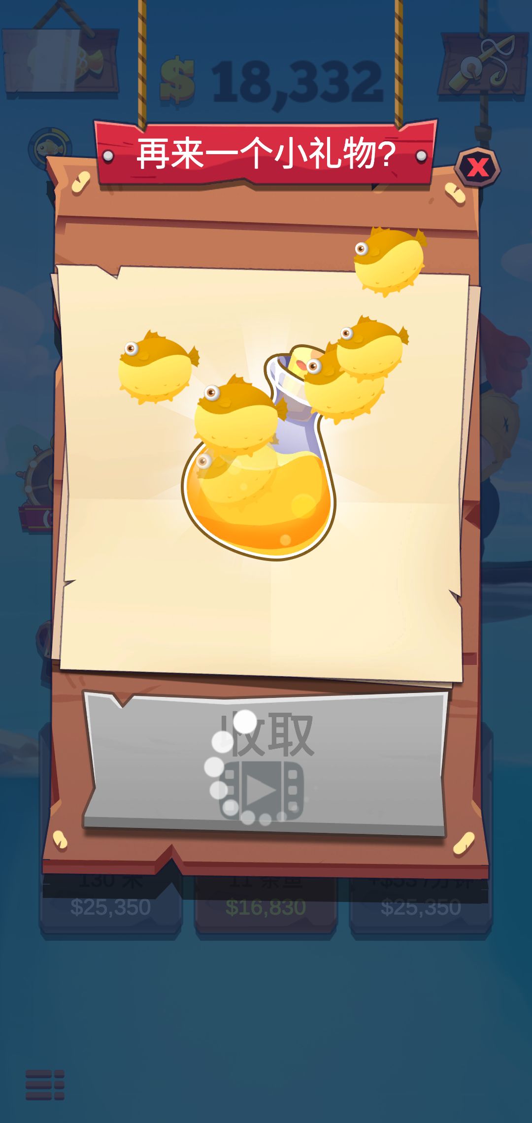 作为一款简约风格的钓鱼游戏,个人觉得消磨时间的话还是一个不错的选择。游戏背景以一个红胡子大叔站在渔船上为衬托,画风简约单一,玩法简单易上手。