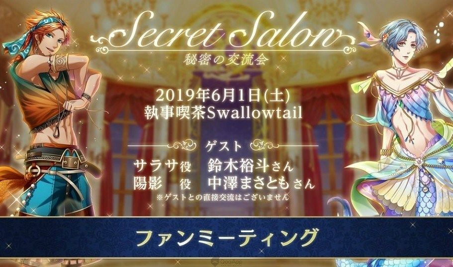 日版《夢100》將在6月1日於執事喫茶「Swallowtail」,首次舉行粉絲見面會「Secret Salon」。擔任「陽影」配音的「中澤まさとも」、擔任「サラサ」配音的鈴木裕斗將以嘉賓身分登場與各位粉絲進行近距離深度交流!