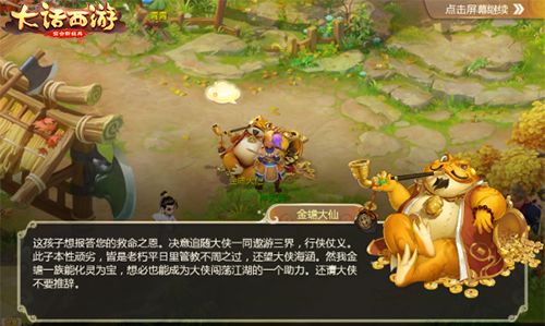 成功解救小金蟾之后,金蟾大仙突然现身,在替小金蟾表达谢意之后,表示获救的小金蟾十分感激侠士们的救命之恩,愿意化身为灵宝成为大侠闯荡江湖的一个助力!在大家接受金蟾的报恩之后,就可以通过培养小金蟾来获得仙器啦!