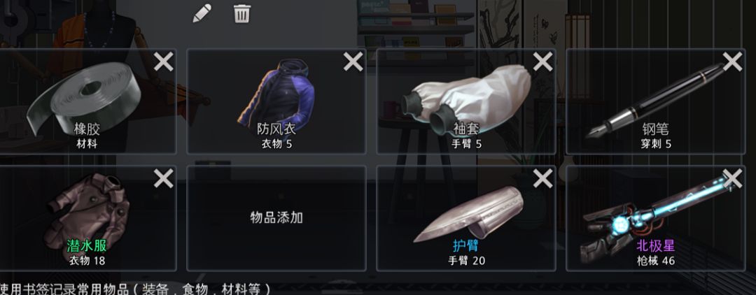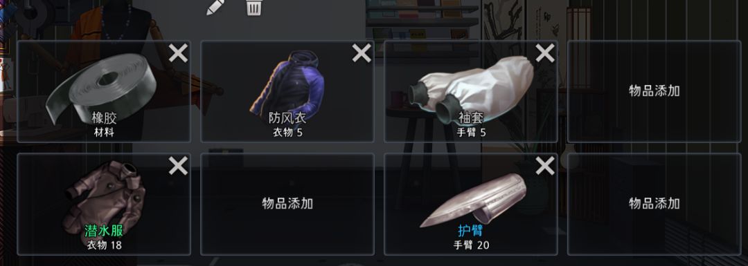 之后转学校,找防风衣+橡胶+袖套,做出潜水服,护臂,橡胶如果在你找到袖套+防风衣之后一直没找到可以先去找森林做好阻刃,防弹背心之后去灯塔找橡胶