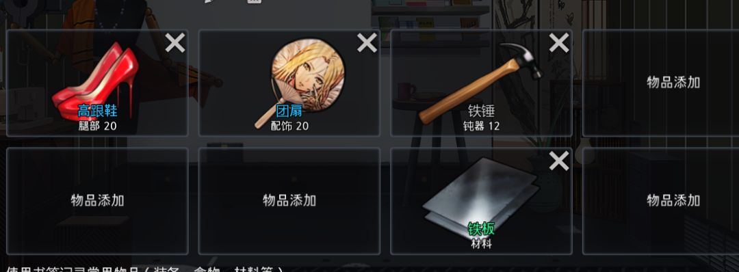 之后转到市政厅,老规矩拖鞋+布+折扇做出团扇+高跟,锤子锤两块铁板之后跳学校,之后就可以效仿套路二的线路了,上面有,翻上去自己看。