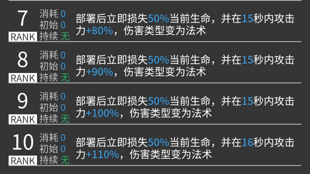 (就是将一个干员从各个角度分析再总体来看,最后直接给出强度。比如同为近卫的银灰,虽也有缺点,但强就是强)