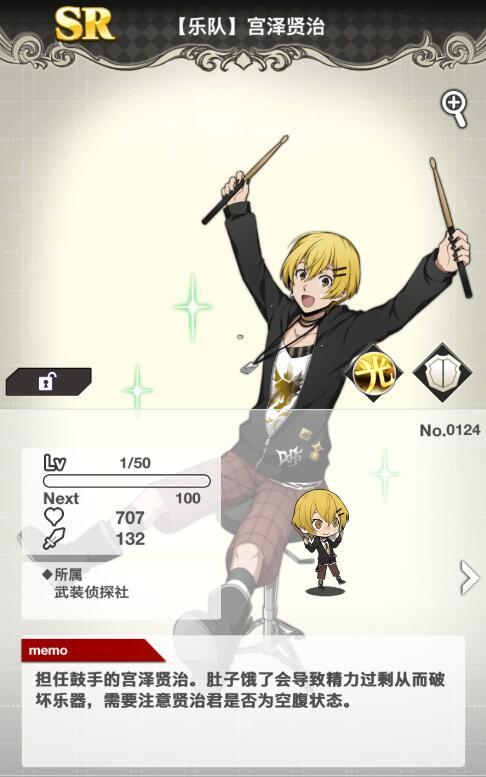 担任鼓手的宫泽贤治。肚子饿了会导致精力过剩从而破坏乐器,需要注意贤治君是否为空腹状态。