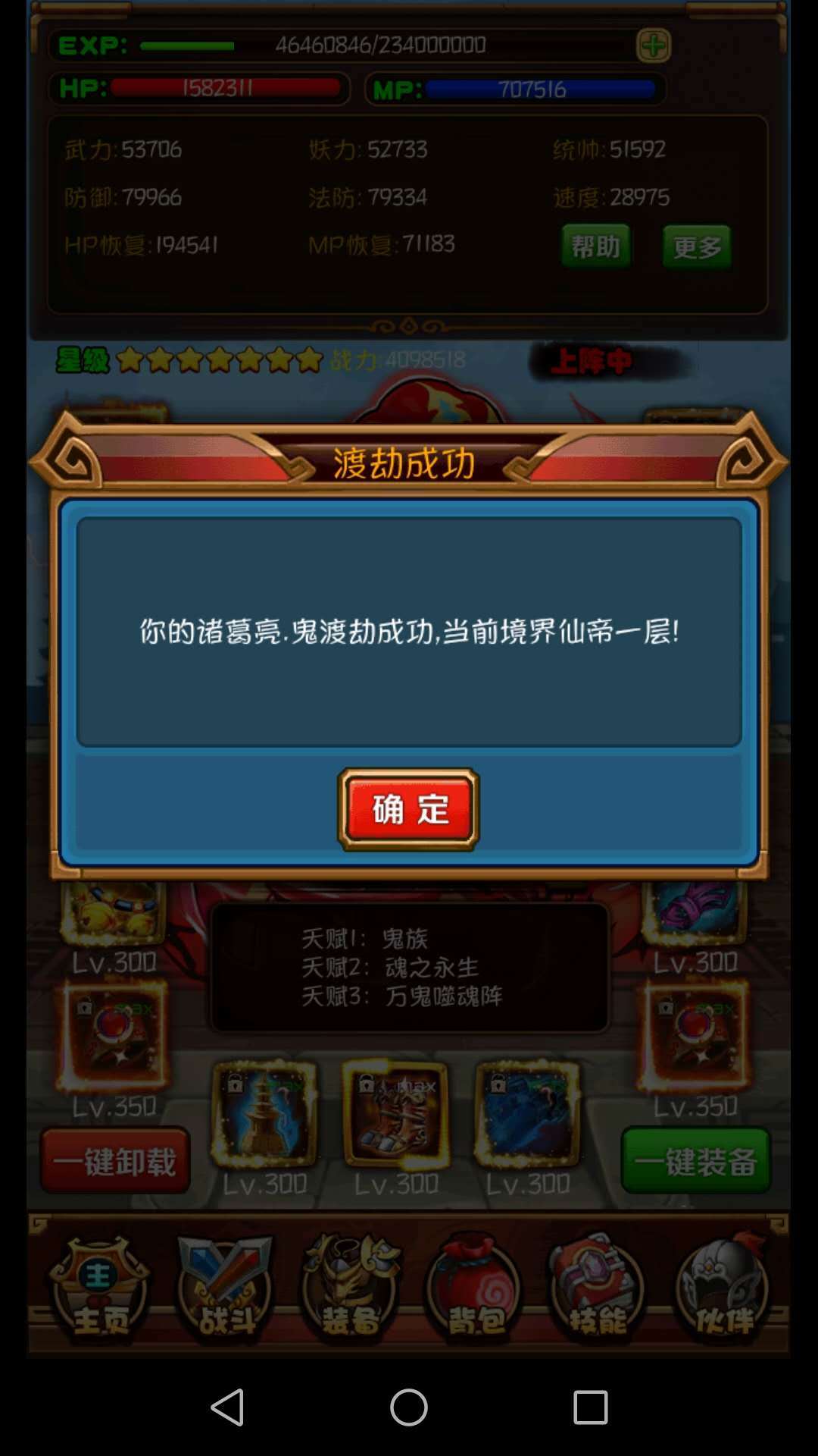 七星诸葛亮 906级 九字真言:1000级 永恒不坏身 500级 一气化三清 1000级
