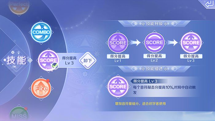 泡泡模式S.PERFECT音符要比弹珠模式更难掌握,所技能上首先不推荐使用极限增强,新手入门玩家推荐使用得分提高,这个技能足以保证拿下关卡S评价要求,并且不用担心S.PERFECT音符和COMBO连击。下面就给大家来介绍后会无期歌曲的音符难点,帮助大家快速达成S评价获得服饰奖励。