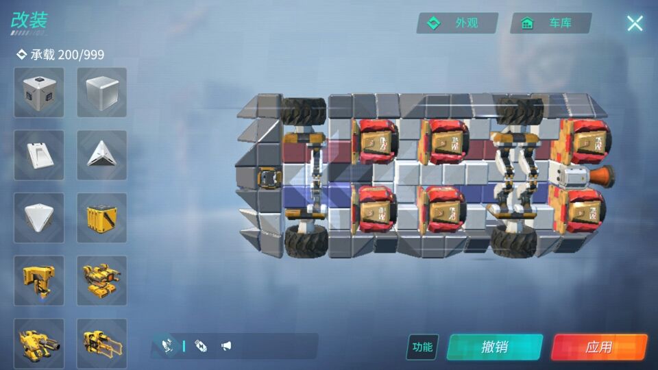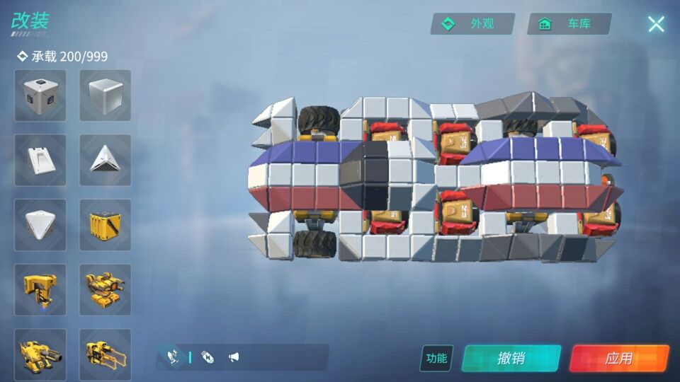 这是一辆四轮车,你可以很直接的看到六个大力神,没错,这就是一辆六喷四轮无名小破车。六喷,速度差不多330km/h,极限358km/h,在空中,只要地图够大,也就是没有掉入深渊这么一说,它的速度可以上400km/h,当然了,只是推测[打脸]。为了保证拐弯的流畅,底部加装了六个小腿,可以漂移。我迎风而行,那感觉,爽啊![滑稽]尾部有一个喇叭,这次只有一个[郁闷],我预计的是有三个,结果做出来就只有一个了。好了,不叨叨了,上多视图