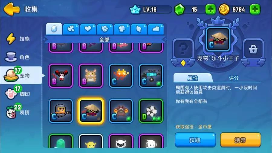 4个C宠,都是极易获得宠物,查看了技能,联想到乐斗小王子的道具获取攻击,我们不难发现,如果搭配湿赖姆的使用道具增加积分和长生印的使用道具恢复生命,能够使主宠乐斗小王子的发育能力和续航能力得到很大的提升。
