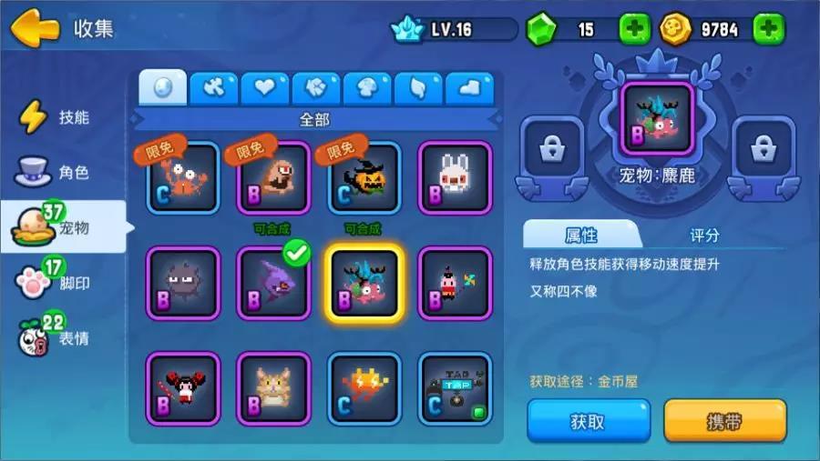在3.15版本更新后,宠物的搭配界面做了很大的调整!使得我们在选择宠物的培养和搭配上有了更大的空间,尤其是C级及以下的宠物,只需金币就能轻松解锁!