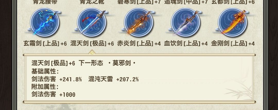 假如你的装备还带有加剑法伤害的属性的话,比如下图