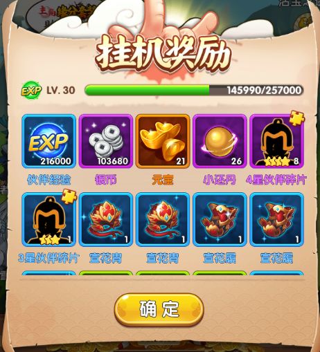 挂机关卡每通关5个关卡,可以领取1次阶段性奖励。奖励包含3种类型: