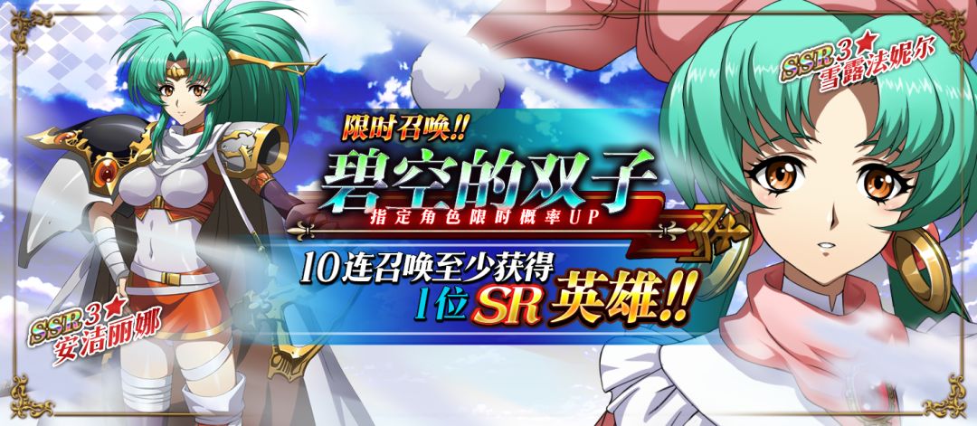 限时召唤[碧空的双子]中SSR英雄雪露法尼尔,安洁莉娜出现概率提升!