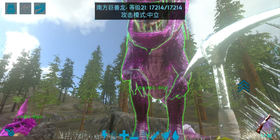 下线重新进游戏后,看南巨变成这样了,血量变成一万七千多了,而且攻击力才40%.连个1级的霸王龙攻击力高都没有,杀个3级的三角龙,整整咬了17口才给咬死。