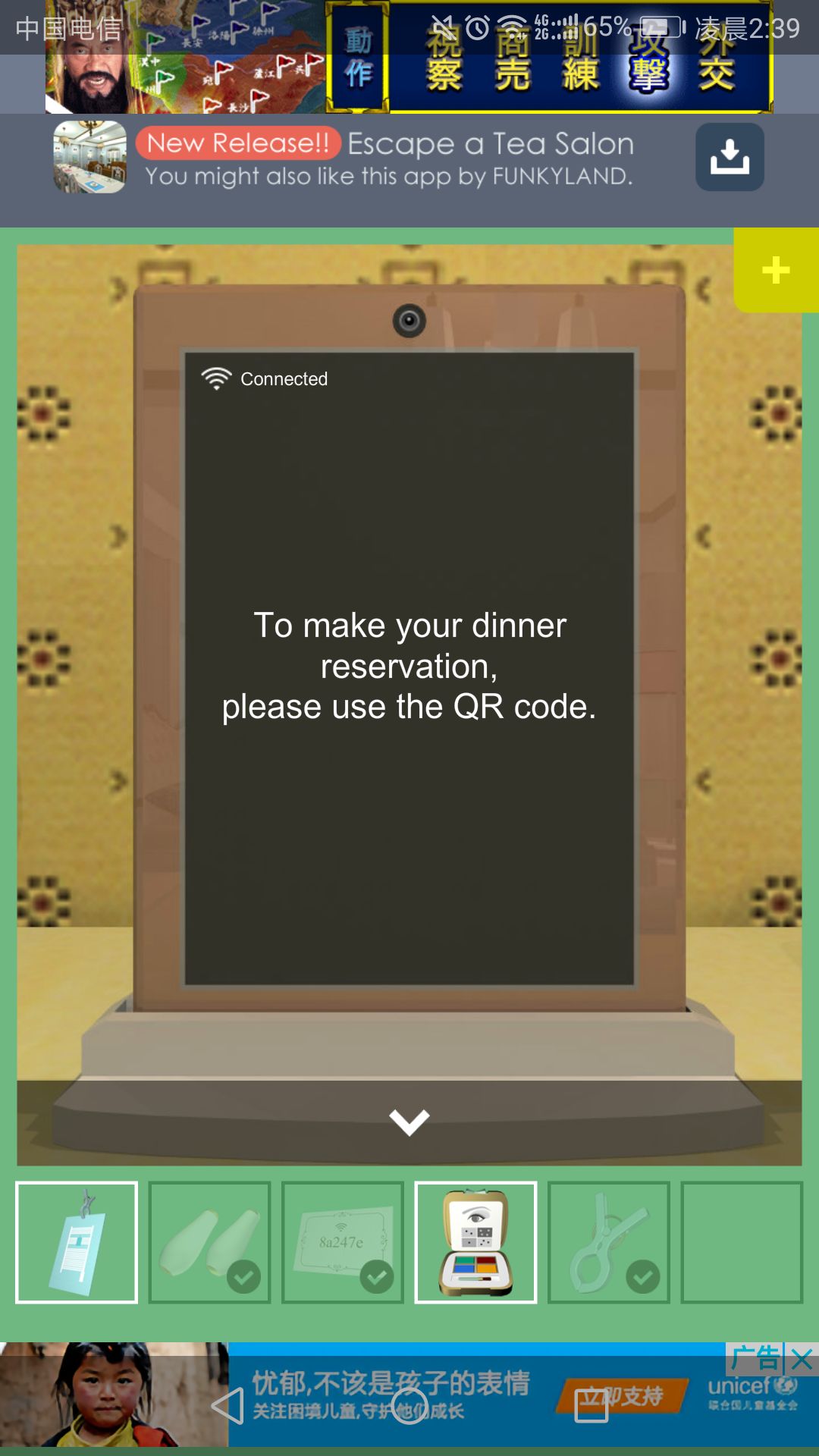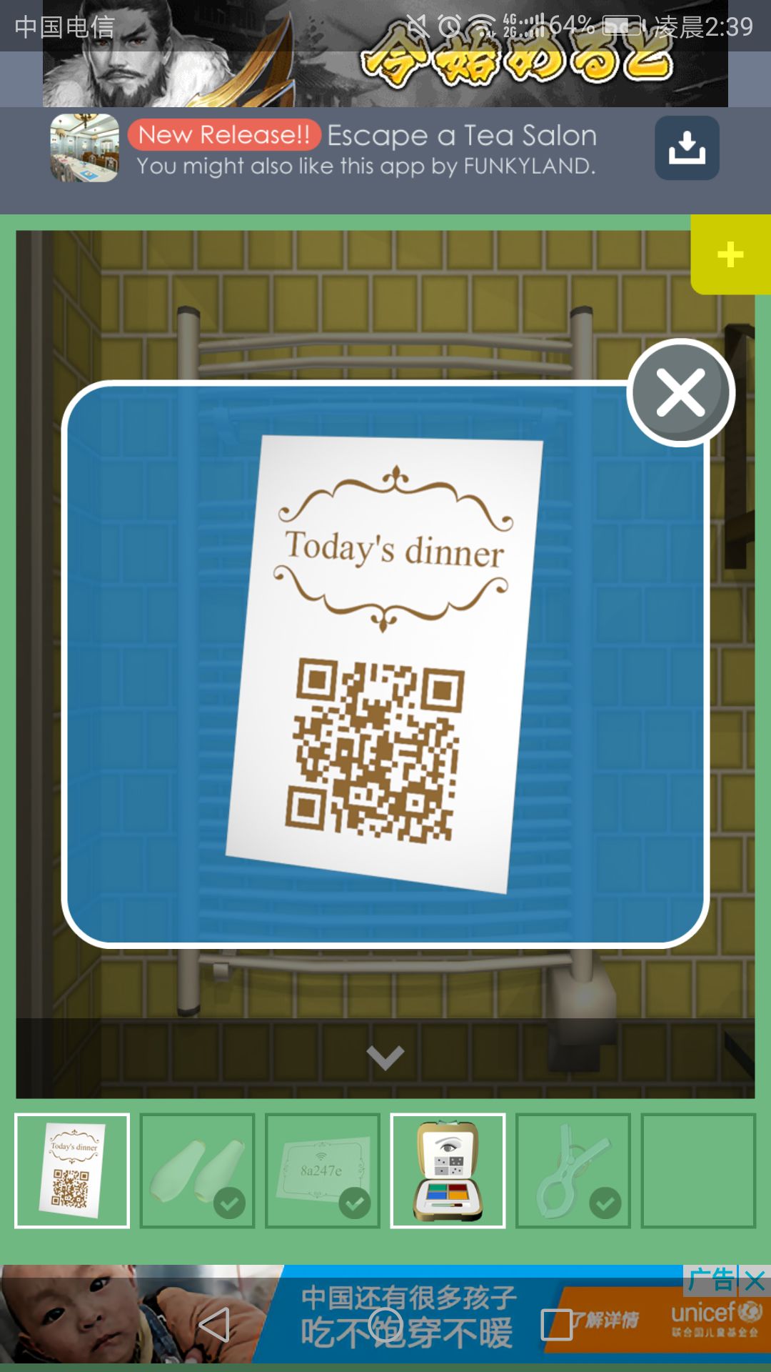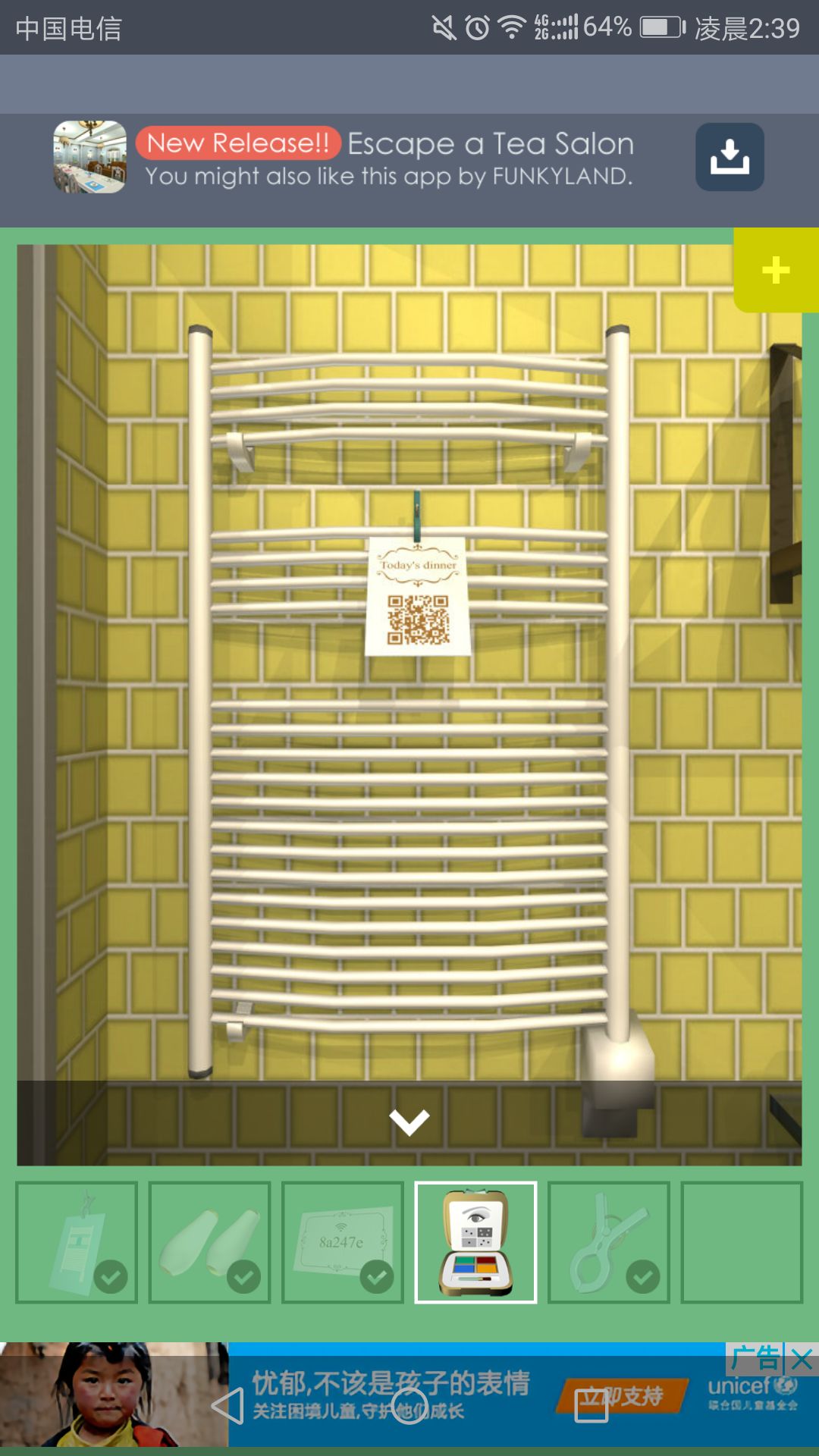 回到淋浴间,点击卡片与左侧架子,得到一张二维码图片