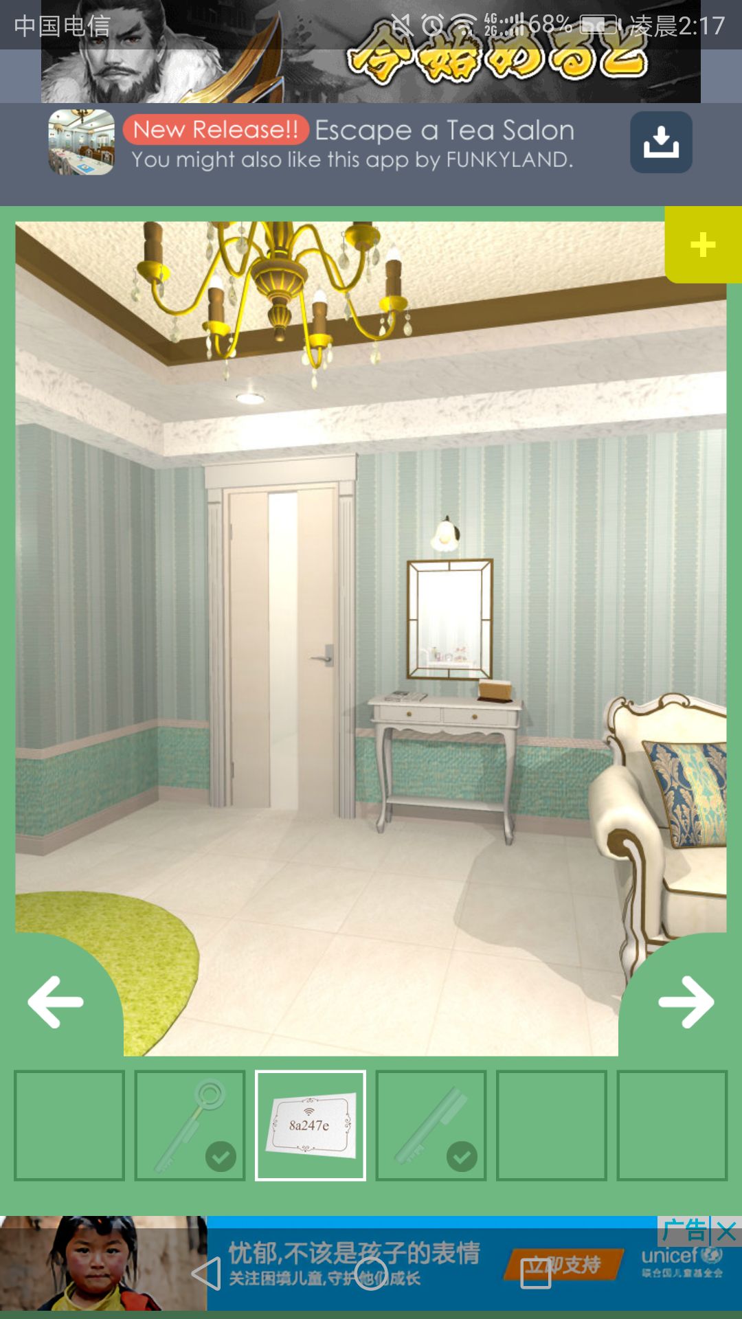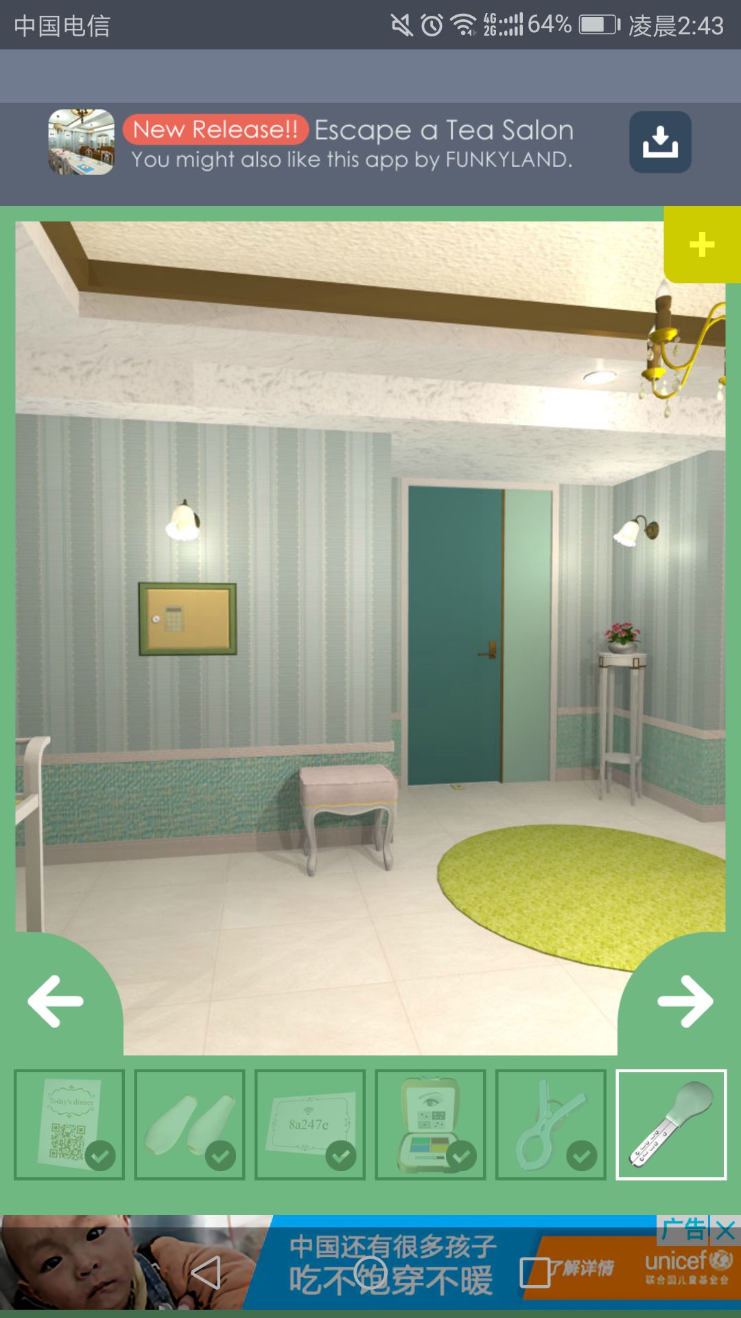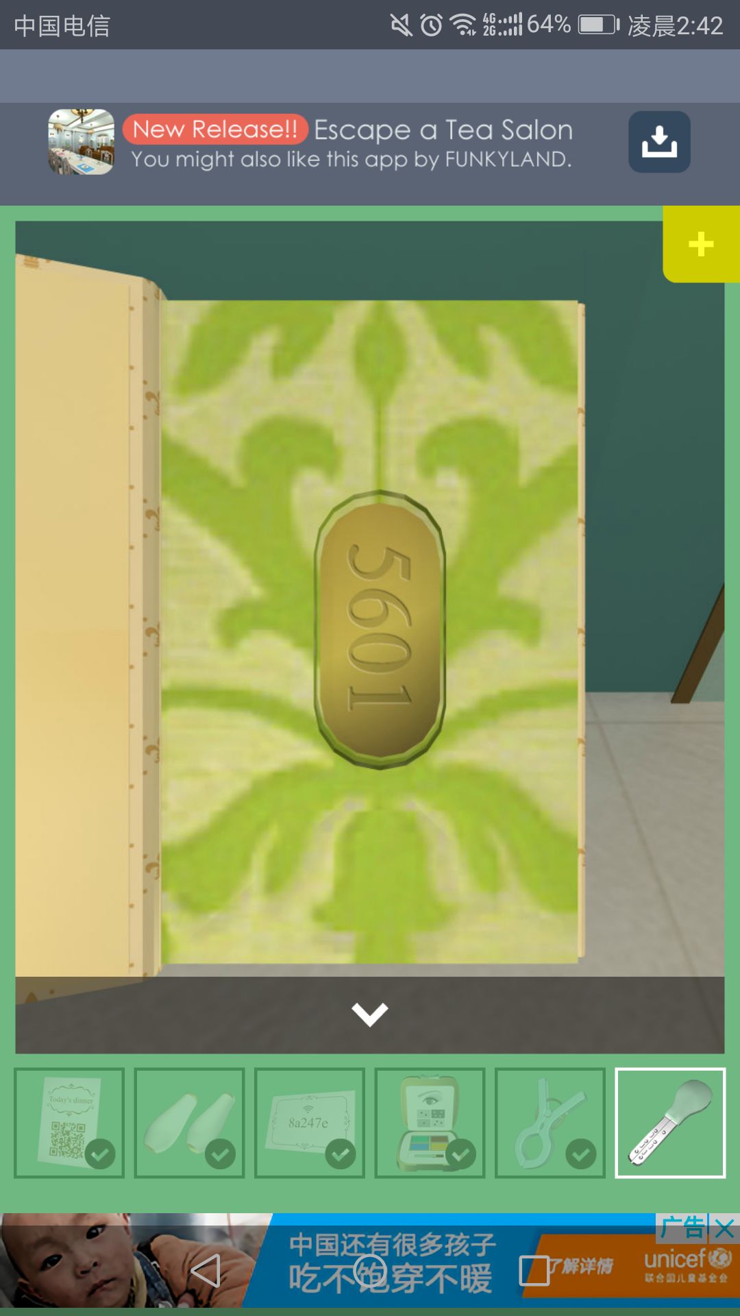 再回到房间打开的门里,点击中间的柜子,输入Wi-Fi密码