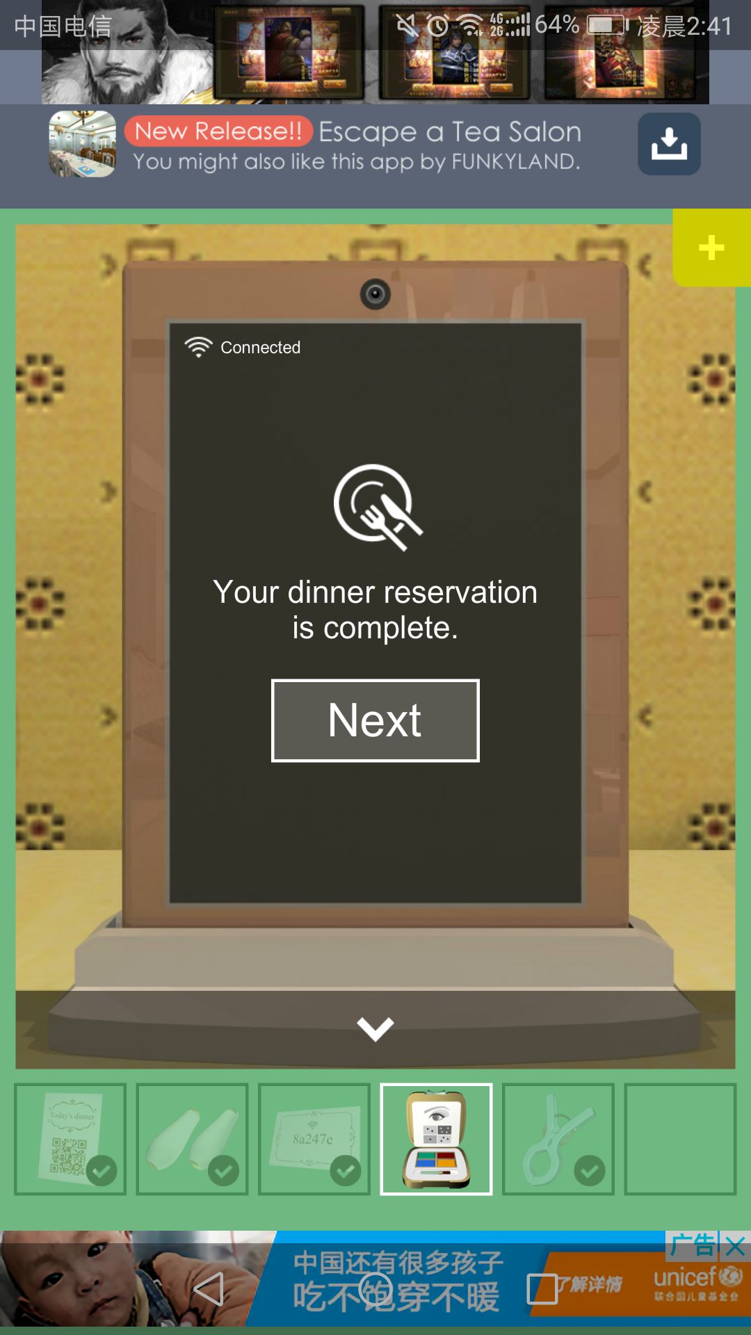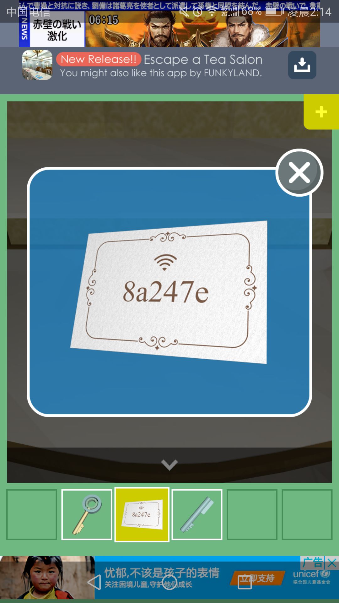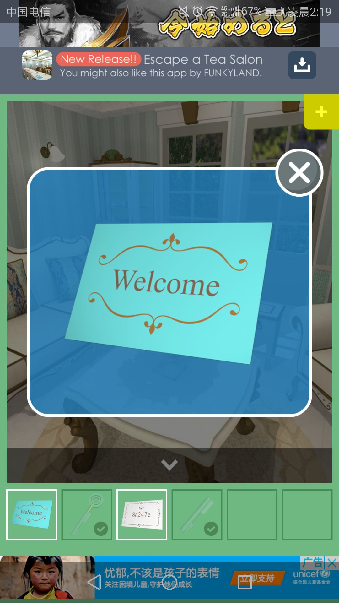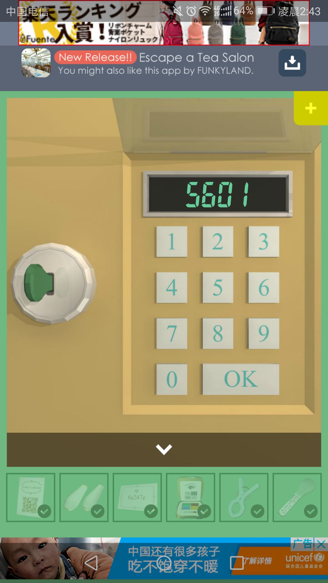 再回到房间打开的门里,点击中间的柜子,输入Wi-Fi密码