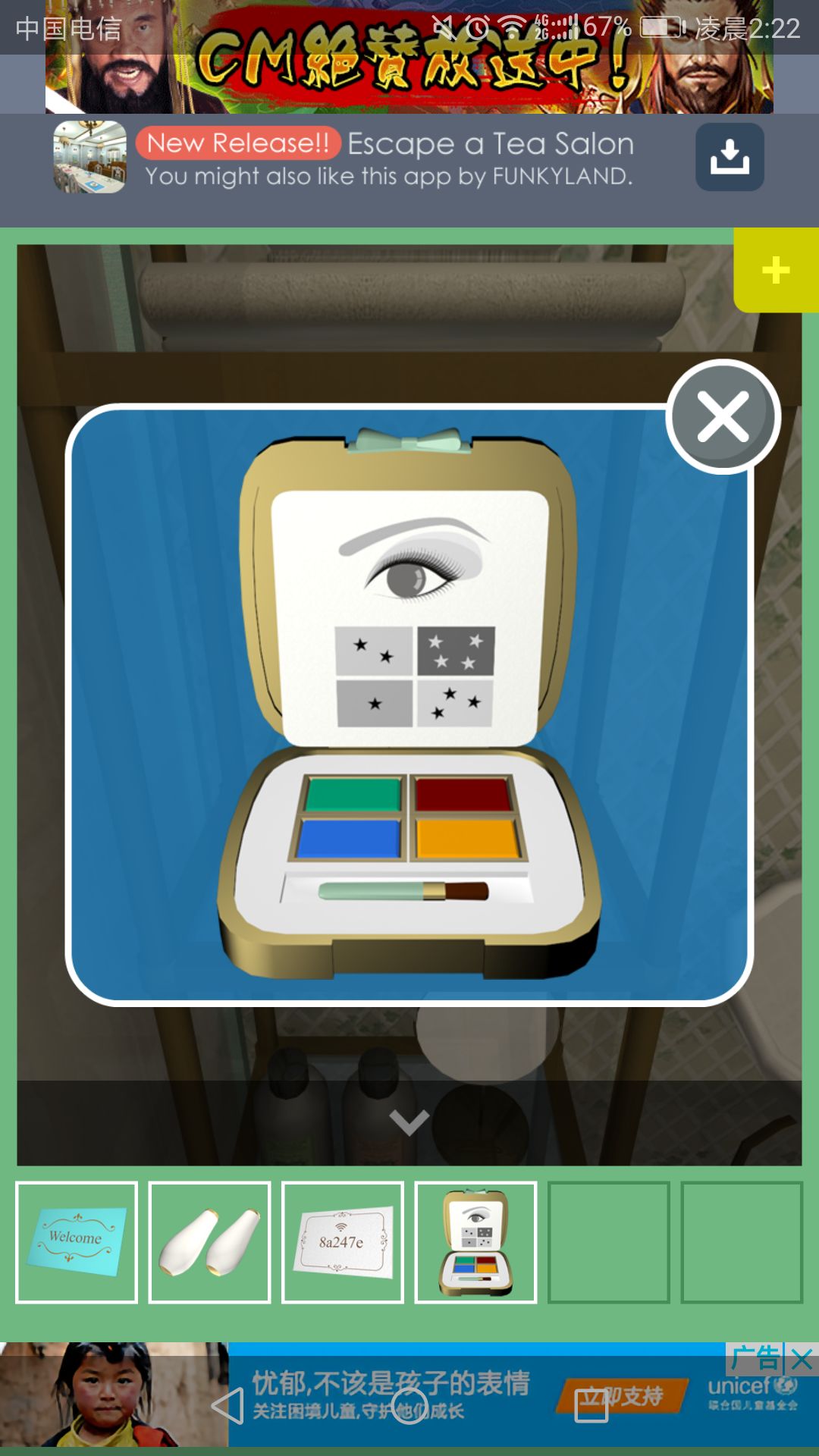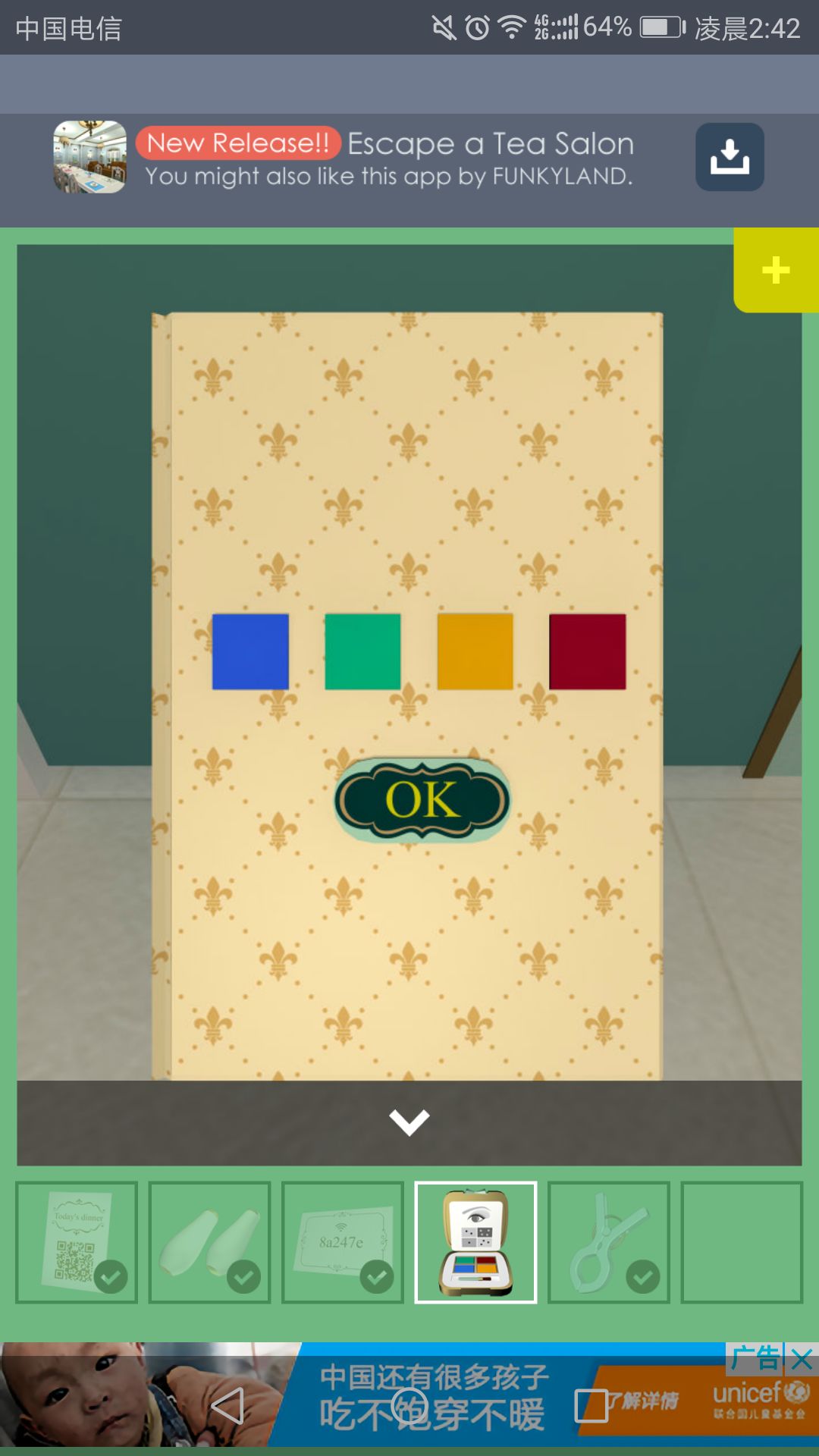 点next,回到大门大门处可得到一本本子。根据之前的眼影盘输入密码