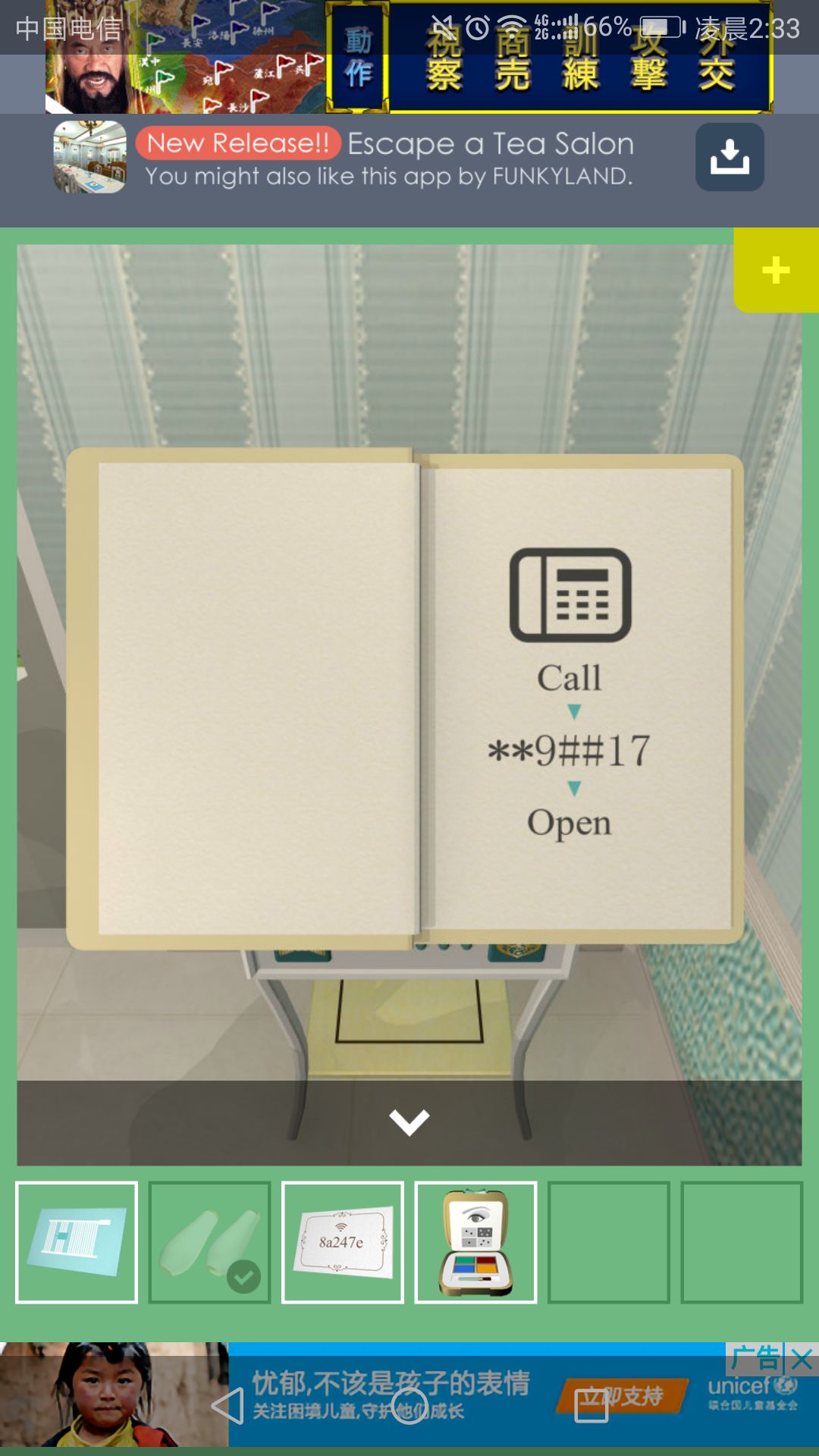 这时抽屉打开,得到房间电话密码